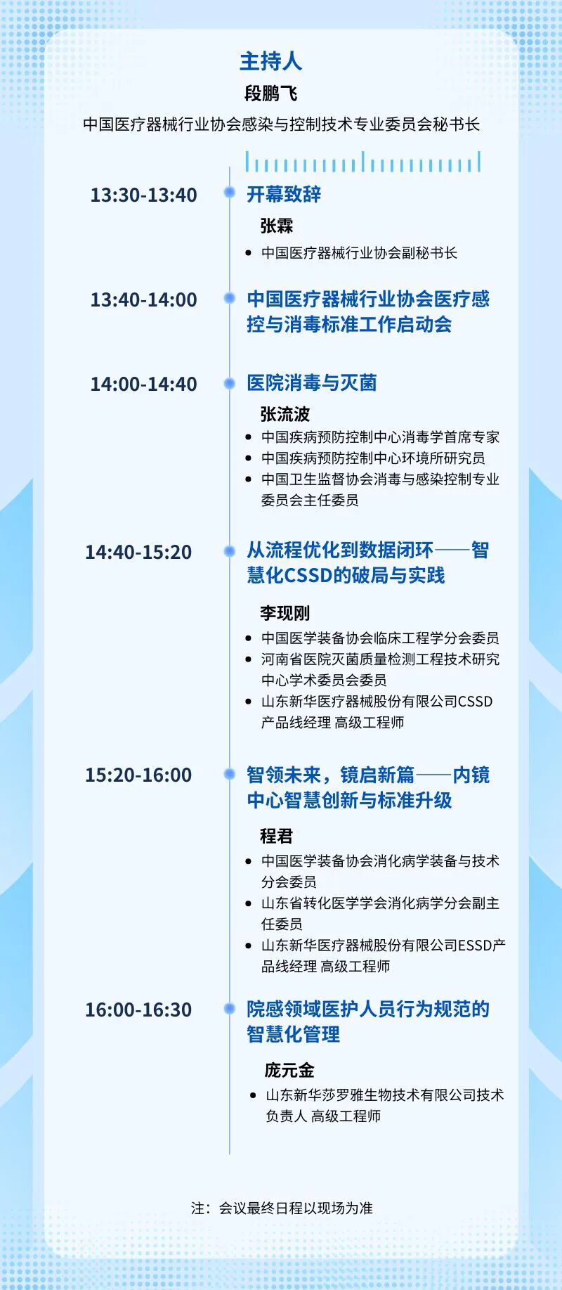 深入探讨消毒供应中心的智能化设备应用、信息化管理系统搭建,以及如何通过智慧化手段优化消毒供应流程,提高供应质量与效率。围绕内镜洗消的智慧化解决方案,包括智能洗消设备、洗消过程的实时监测与追溯系统等,交流内镜洗消中心的智慧化建设经验与实践成果。(三)中国医疗器械行业协会医疗感控与消毒标准工作启动会正式宣布成立中国医疗器械行业协会感染与控制技术专业委员会医疗感控与消毒标准制修订工作组(本工作组仅为开展标准制定工作组建,不作为本专委会的分支机构,所开展的相关工作在专委会秘书处及总会秘书处指导下进行),介绍工作组的组成架构、工作职责与未来规划,为推动医疗感控与消毒行业规范化、科学化、智慧化发展提供有力支撑。
